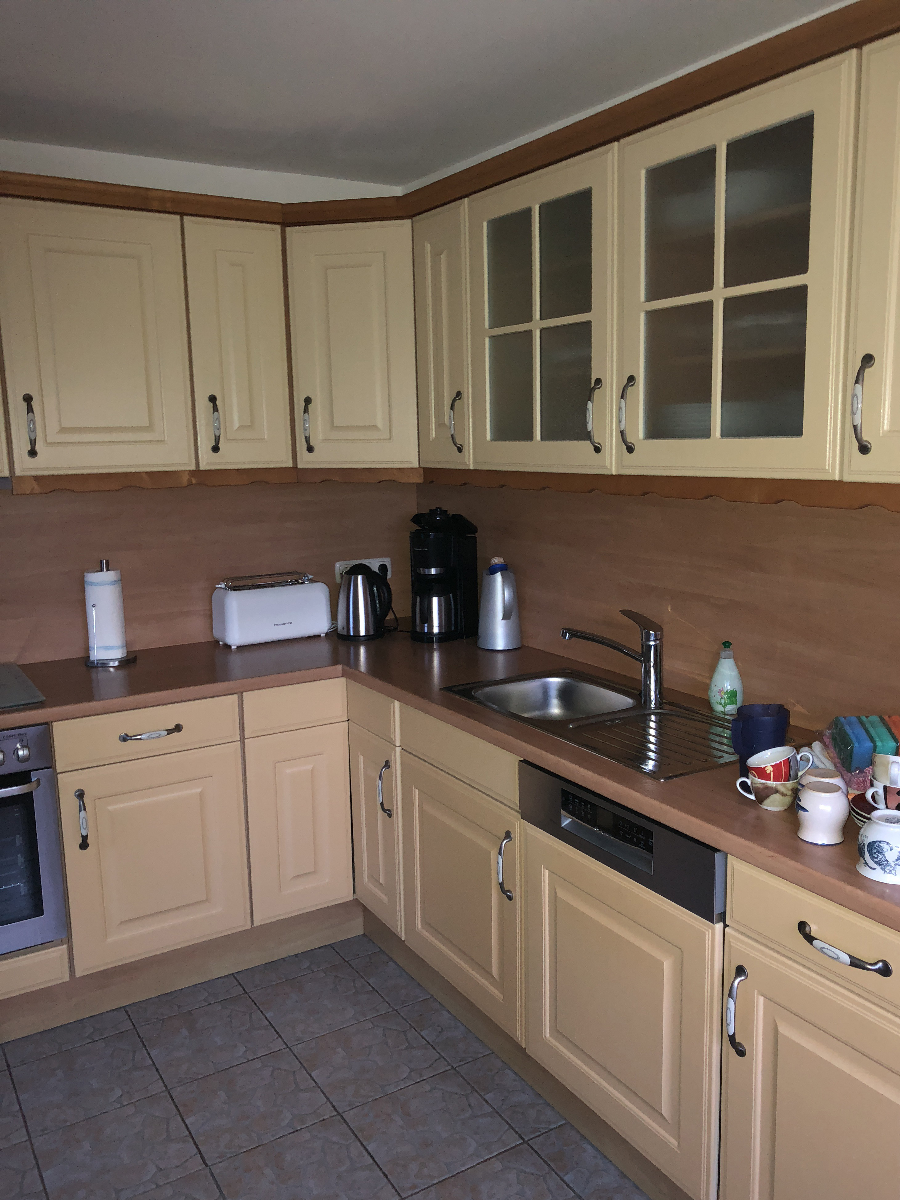 - Geschirrspülmaschine, zwei Kühlschränke, ein Gefrierschrank, Backofen, Mikrowelle, Kochfeld, Kaffemaschine, Toaster